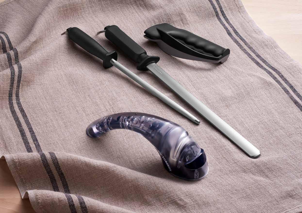 Zum Kochen braucht man scharfe Messer. Unsere Kollektion an professionellen Schärfwerkzeugen bietet mehr Sicherheit und Präzision in der Küche. Wählen Sie aus unserem grossen Sortiment an Abziehstählen, vom schrägen Victorinox Sharpy bis zum kompakten Dual-Messerschärfer, unserem innovativen Schärfer mit integrierten Keramikrollen zum Vorschleifen und Polieren. Mit diesen hervorragenden Schärfwerkzeugen bleiben Ihnen Ihre liebsten Küchenhelfer noch viele Jahre erhalten.