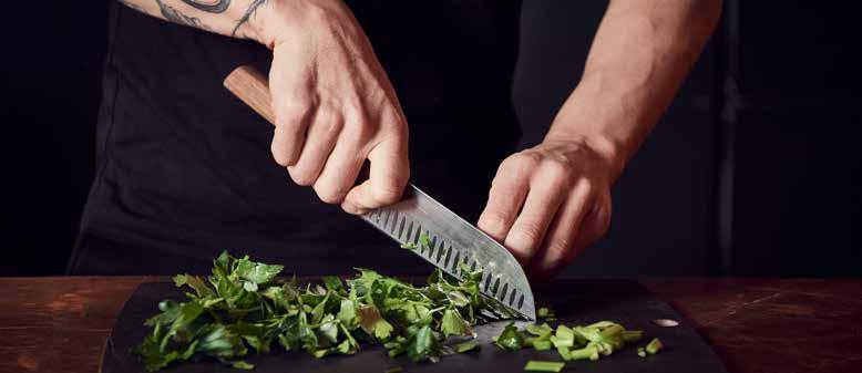 Die einzigartigen Griffe werden meisterhaft aus europäischem Nussbaumholz oder Kunststoff in einer Auswahl an bunten Farben sowie klassischem Schwarz gefertigt. Ihre ergonomische Form bietet höchsten Komfort beim Hacken, Schneiden und Würfeln. Erleben Sie die neuen Stars der modernen Küche.