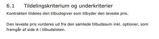 Kontrakten tildeles den tilbudsgiver, som tilbyder det økonomisk mest fordelagtige bud: