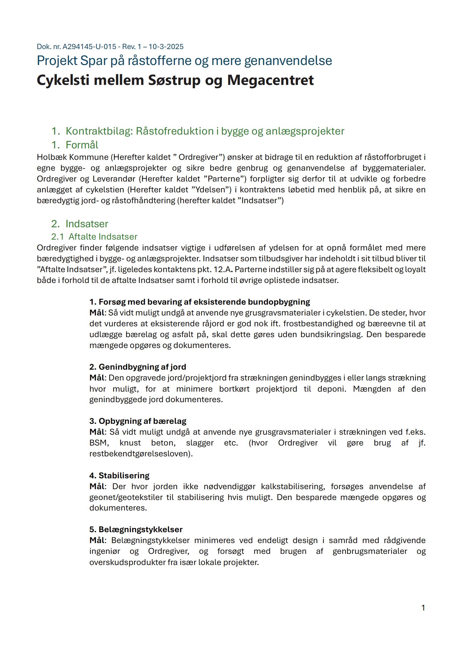 Mål: Så vidt muligt undgå at anvende nye grusgravsmaterialer i strækningen ved fx BSM, knust beton, slagge (hvor ordregiver vil gøre brug af jf. restbekendtgørelsesloven).