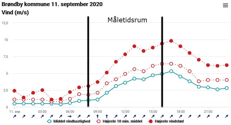 6.2 Støjbidrag og vejr i haven ved Bolig 3 under målingerne