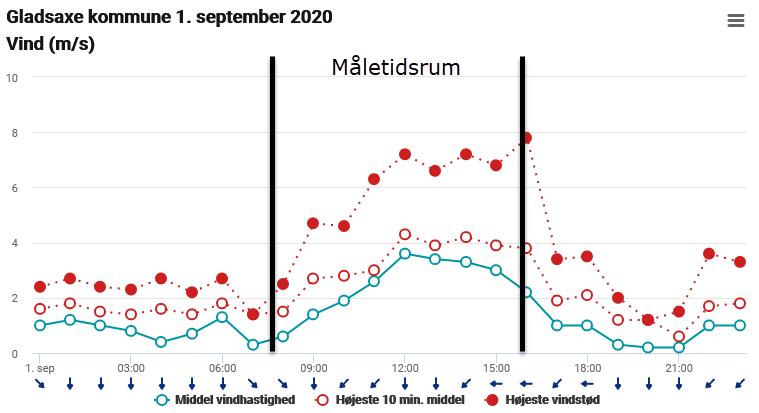 Det var tørt under målingerne først på dagen. Det var overskyet hele dagen. Temperaturen var 10-18°C.