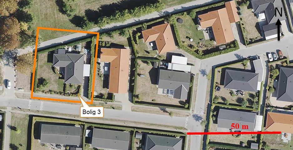 Figur6 Oversigtoveradressen,omliggendemotorvejesamtstøjhegnsplaceringerogmålepositioner. Norderoppåalletregrafikker.