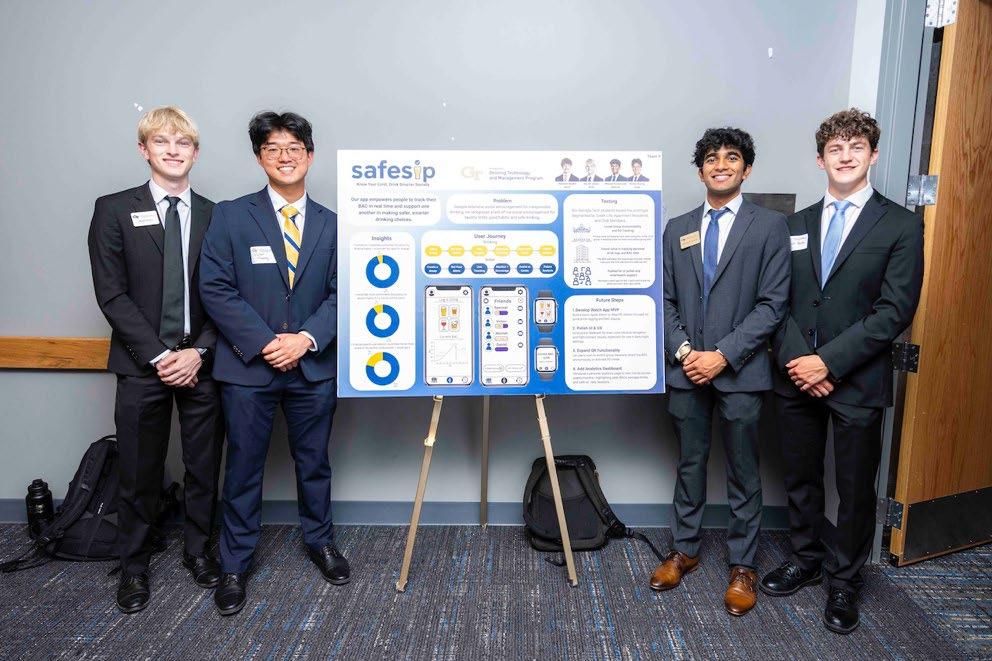 At the poster showcase, an audience of faculty, staff, students, alumni, and parents voted for the most creative project, the most likely to have an impact, and the most likely to be funded. Team TuneUp: Connect Drivers with Certified Mechanics won “Most Creative Project ” Team safesip: Alcohol Safety App using Existing Social Relationships won “Most Likely to Have Impact.” Team NAVIA: Corporate Travel Management Platform won “Most Likely to be Funded.”
