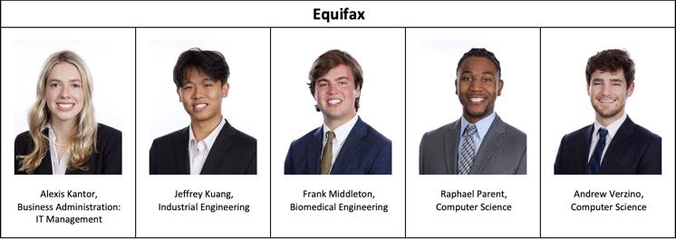 Frank Middleton V (biomedical engineering), Jeffrey Kuang (industrial engineering), Alexis Kantor (business administration - IT management), Raphael Parent (computer science), and Andrew Verzino (computer science)