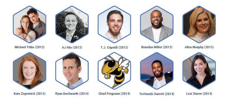 First Row: Kaylin Nolan (international affairs and modern languages, risk3sixty capstone team 1), Vikas Muralidharan (materials science and engineering, Naval Nuclear Laboratory (FMP) capstone team), Mario Asiain-Ayala (business administration: strategy & innovation), and Gbemisola Adeleye (biomedical engineering, Georgia-Pacific LLC capstone team). 2nd row: Andrew Verzino (computer science, Equifax capstone team), Joanna Reese (electrical engineering, NCR Voyix capstone team), Mwenda Maui (computer science, risk3sixty capstone team 1), Emily Cory (industrial engineering, SpaceWorks capstone team), and Christine Webster (public policy, Caterpillar Inc. capstone team).