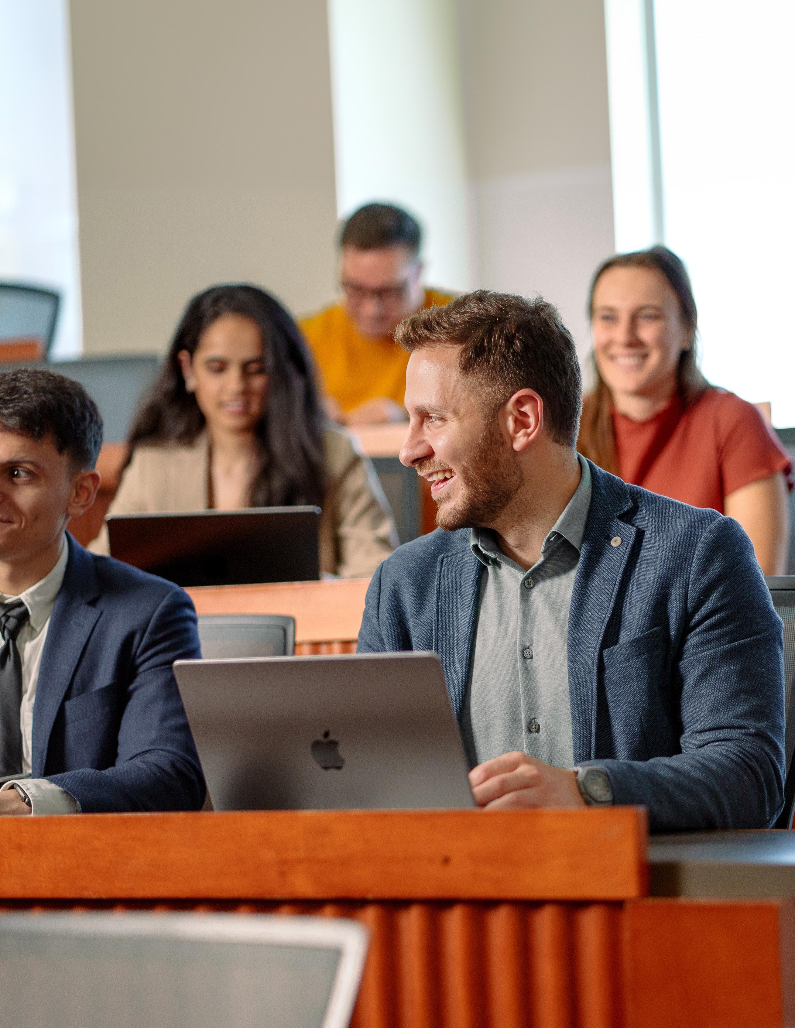 The MBA classroom experience at Scheller College of Business is dynamic and collaborative, fostering an environment where diverse perspectives enrich learning. Coupled with the expertise of the Jones Career Center, students receive personalized support tailored to their unique career journeys.