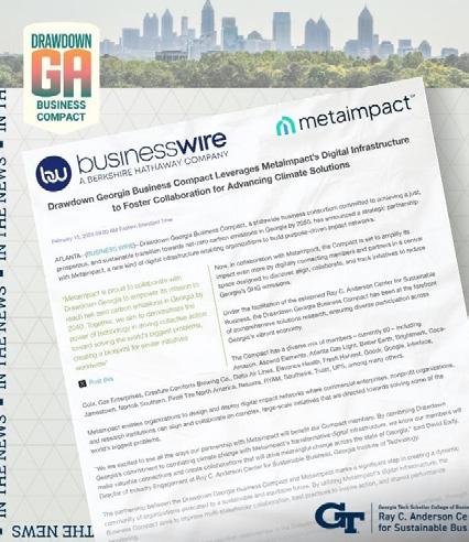 The Drawdown Georgia Business Compact (Compact) is leveraging Metaimpact’s digital infrastructure to foster collaboration for advancing climate solutions. The new partnership digitally connects members and partners to discover, align, collaborate, and track initiatives to reduce Georgia’s GHG emissions. The Compact and Metaimpact aspire to lead the way in demonstrating that climate change can be addressed comprehensively with a collective effort from commercial enterprises, nonprofit organizations, research institutions, and more.