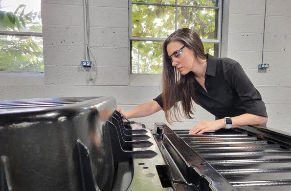 As a senior polymer engineer for Hyundai and Kia, she is charged with finding and developing materials to meet the performance needs of designers and engineers while balancing the cost demands of the purchasing department. She has worked extensively on plastics for vehicle exteriors and powertrains, but responsibility for all the plastic components for vehicles in North and South America essentially falls under her purview.