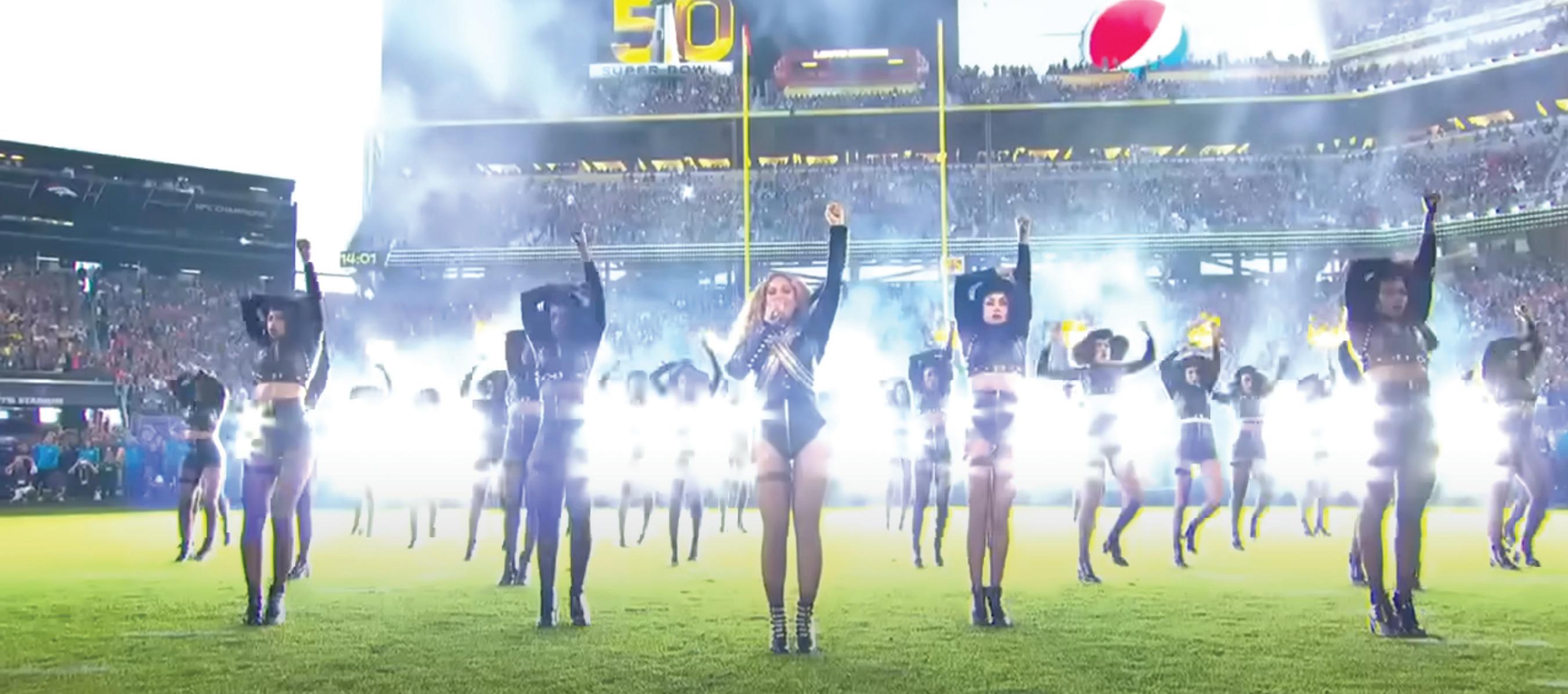 Beyoncé Knowles performed her single “Formation” at the Super Bowl 50 halftime show during Super Bowl 50, February 7, 2016. (https:// www.youtube.com/watch?v=SDPITj1wlkg) Screen capture from NFL
