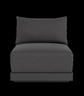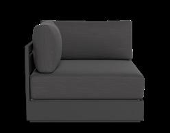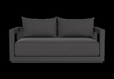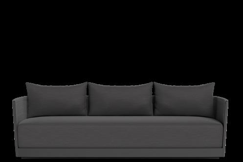 A. Vaucluse 3 Seat Sofa Shown in Aluminum Asteroid Frame and Sunbrella Cast Slate Fabric.