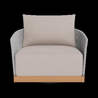 Avalon Swivel Lounge Chair Shown in Natural Teak Frame, Grey Rope and Panama Marble Fabric.