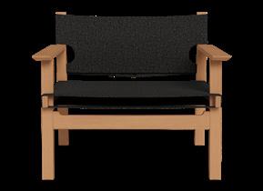 B. Catalina Easy Chair Shown in Natural Teak Frame and Copacabana Midnight Fabric.