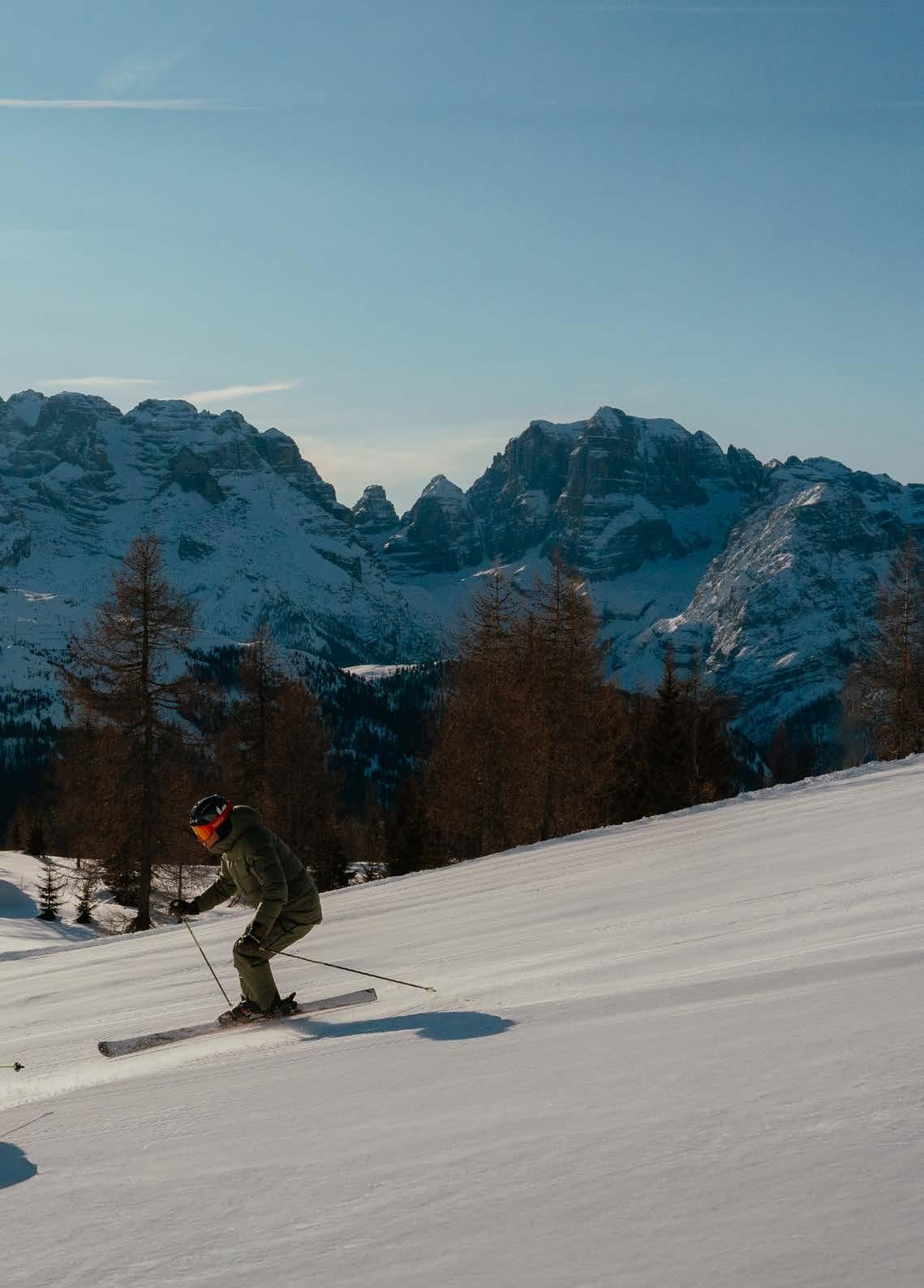 Ideal number: less crowding, more mountain The first major change concerns peak-season crowd management. Madonna di Campiglio will be the first ski destination in Italy to introduce a maximum number of skiers allowed simultaneously on the slopes. The idea stems from a key finding: according to the international Best Ski Resorts study, skier satisfaction drops drastically beyond 14,000 people. Hence the decision to define an Ideal Number during the periods 28 December–5 January 2026 and 14–22 February 2026. The measure applies only to daily skipasses, without any surcharge. Seasonal passes, multi-day passes (two days or more) and payper-use tickets are unaffected. The aim is to protect slope quality, avoid bottlenecks and guarantee shorter queues for those staying in the valley. The objective is not to limit access but to enhance skier experience during the busiest weeks of the season. For a destination that welcomes a diverse audience—sporty skiers, families, panorama lovers and après-ski enthusiasts—this means a more enjoyable and safer mountain environment.