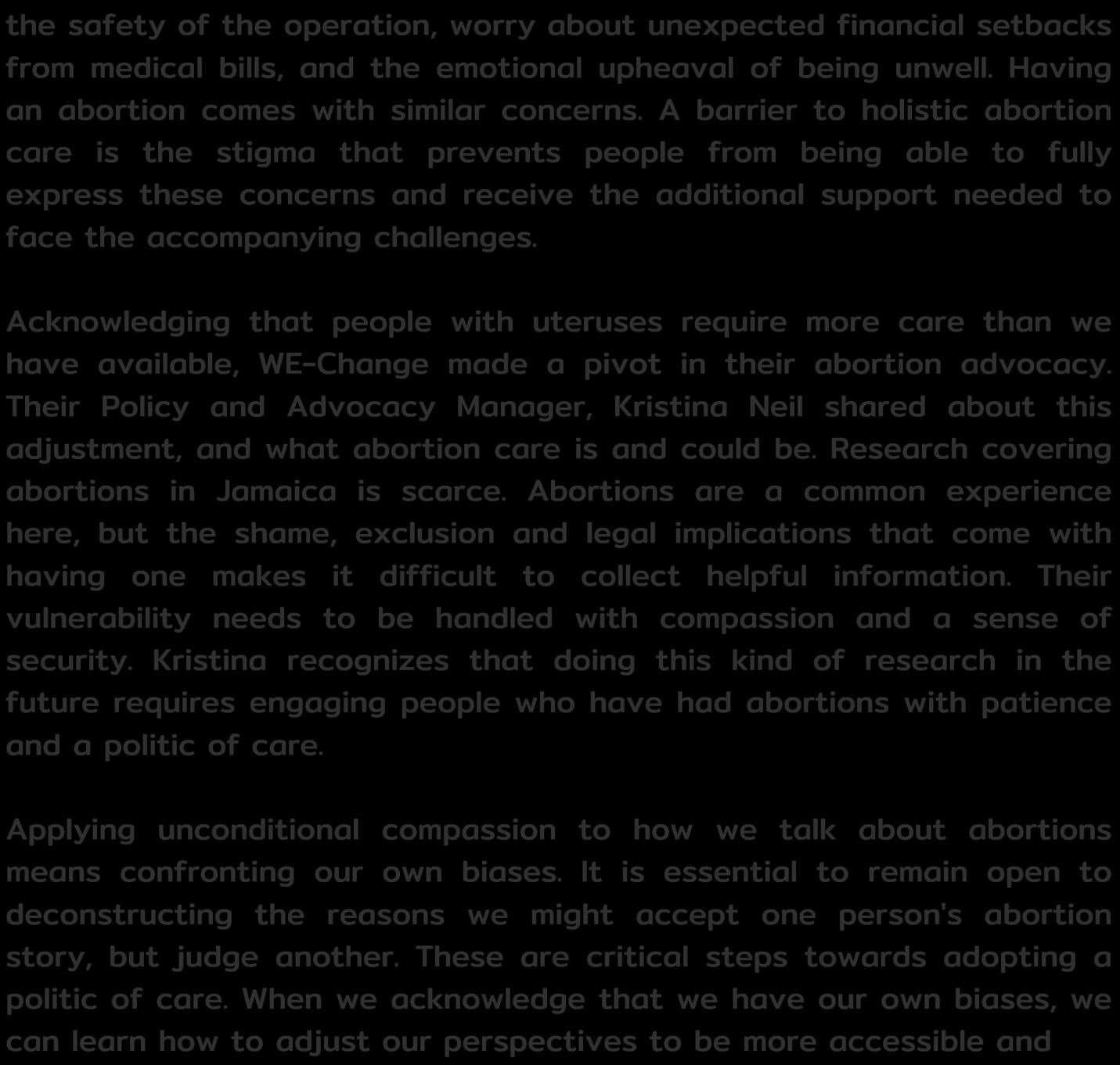 Futures where people who can get pregnant are supported in the fullness of our experiences and supported in the fullness of our experiences and our biggest reproductive health concerns are our biggest reproductive health concerns are which healthcare providers can offer the best which healthcare providers can offer the best service. service.