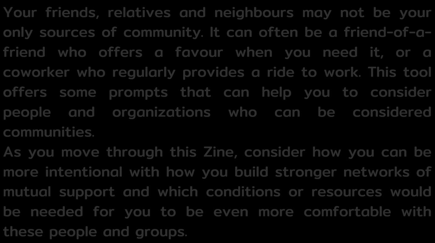 After grounding yourself in a way that feels best for you, feel free to consider this question: What can I do to strengthen the relationships I have with my communities? (Consider resources you have: skills, tools, care, time, etc)
