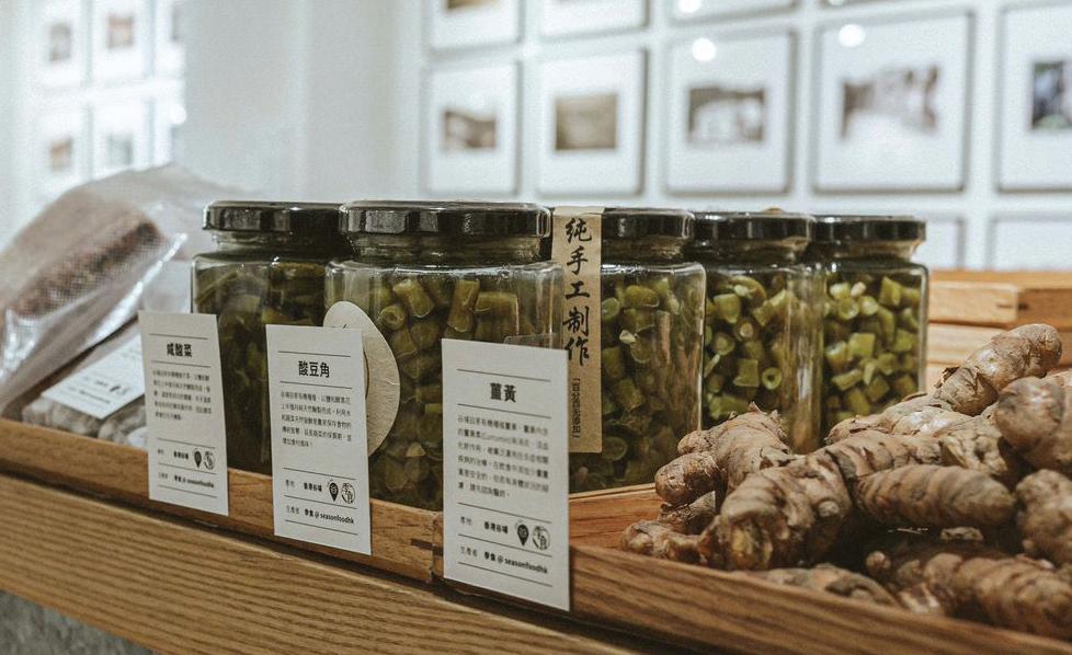 咸酸菜 酸豆角 薑黃 谷埔自家有機種植芥菜,以鹽 和酵素花上半個月純天然醃 製而成。溫度是成功發酵的 關鍵,冬天溫度較低有利於酵 母菌作用,因此酸菜都會在冬 天醃製。