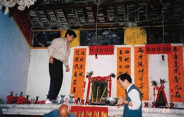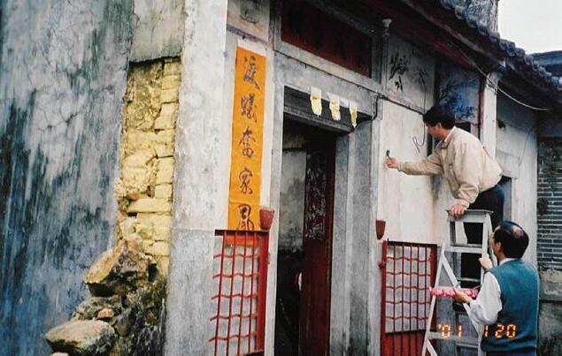 上圖 2000年代,新年村民忙 着為祖祠清潔和換上新的對聯 (照片由宋煌貴提供)
