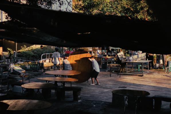 未來的谷埔,難復昔日的農村,除了復耕,亦加入文 化、旅遊、生態不同元素。我們嘗試從生態、經濟、文 化和社會的角度,了解村落可持續發展的可能,如:村 民何仲瑜將舊物料,升級再造,舊門板變成木枱,橫樑 化作長椅,地方智慧解決社區問題。