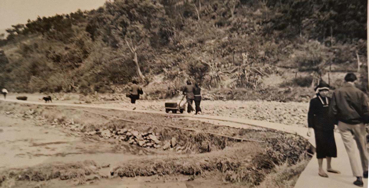 她笑說當年回谷埔是苦差,「小時候,坐着垃圾船回 村,小木椅上,腳下有一層海水,佈滿一隻隻的水曱 甴,牠們在腳邊行過。」(見左圖)
