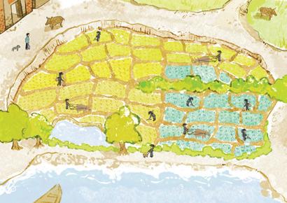 控制牛隻拉犁,將農田深處養 分較多的土壤掘出,同時將表 土的雜草蓋入土中,改良土壤 的透氣性和透水性。