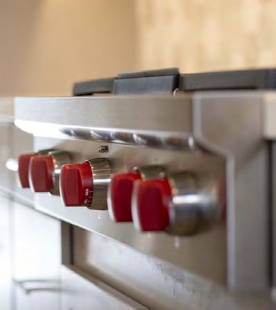 • Quartz countertops with 1 ½” miter edge with standard 6” backsplash and full splash behind the cooktop