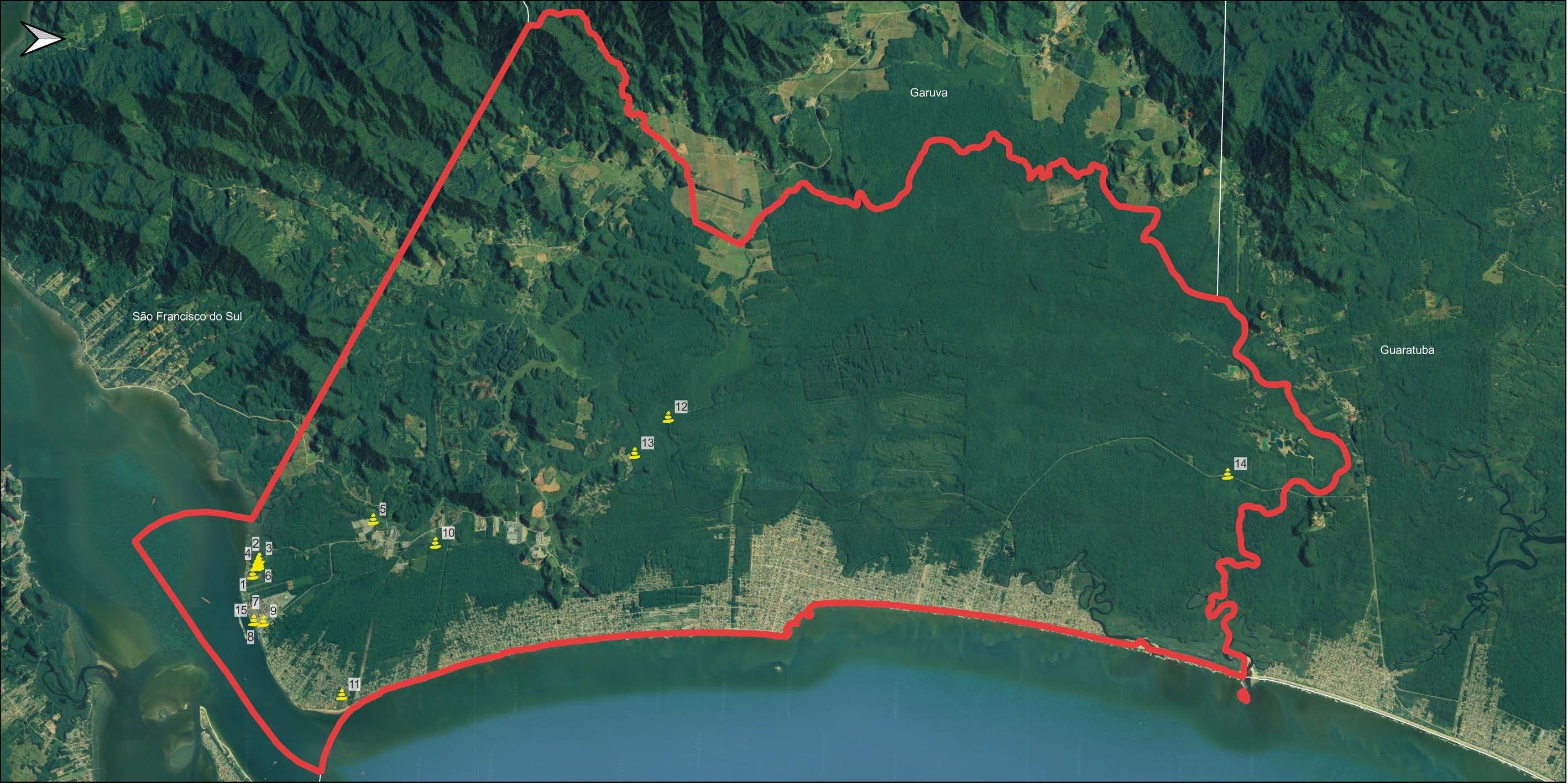 ANGULO, R. J. & Souza, M. C. 2004. Mapa Geológico da Planície Costeira entre o Rio Saí-Guaçu e a Baía de São Francisco, Litoral Norte do Estado de Santa Catarina. Boletim Paranaense de Geociências, n. 55, p. 09-23.