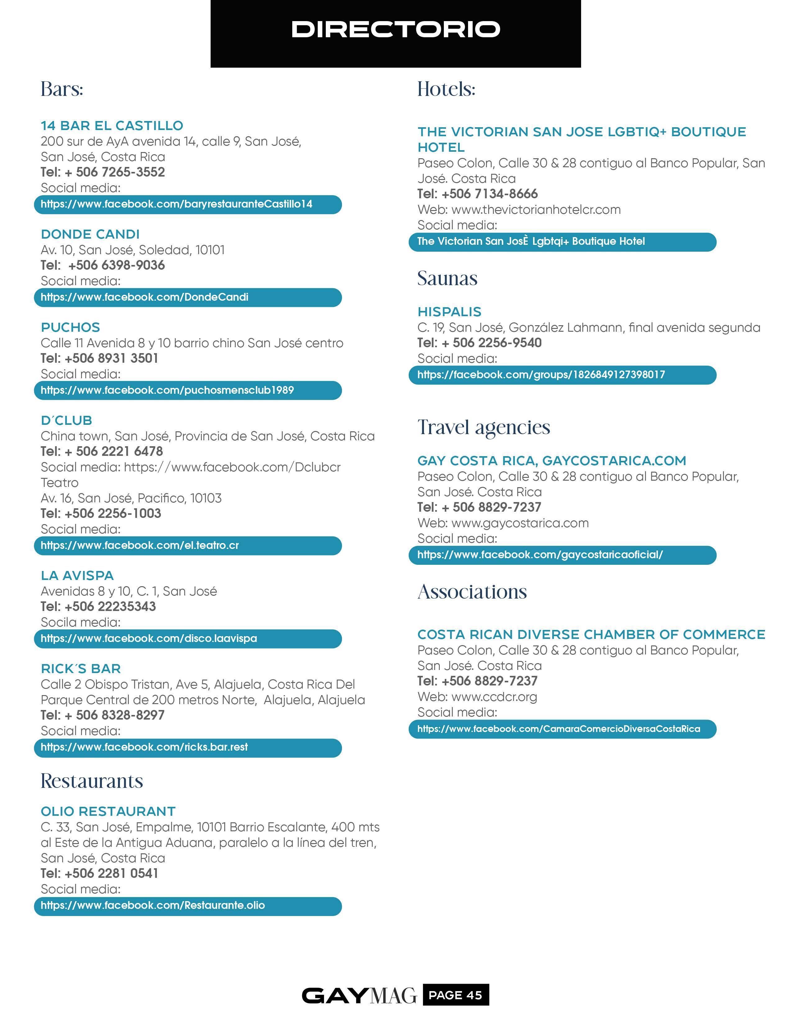Gay Costa Rica Pág 4. Oficinas Centrales Revista Gay Costa Rica San José, C.R. Info@gaycostarica.com
