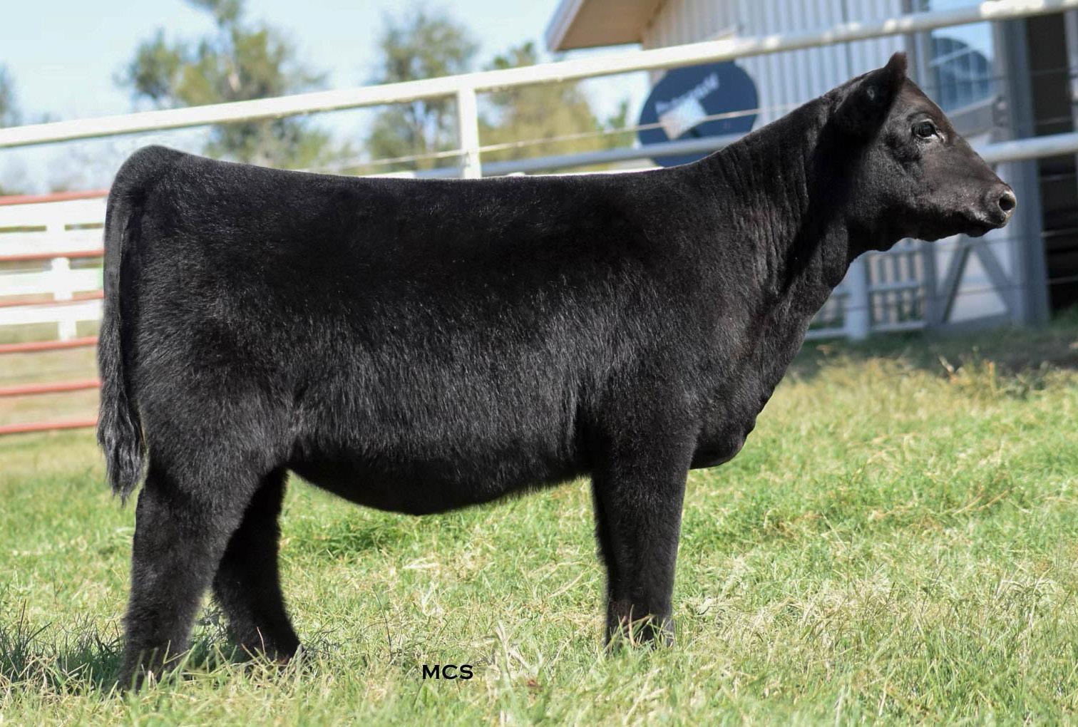 HAS THE BIG-TIME PIECES TO BE COMPETITIVE AT THE NATIONAL JUNIOR ANGUS SHOW NEXT SUMMER. THIS MARCH STEER PROSPECT IS BEAUTIFUL PROFILING FROM THE SIDE, BUT MORE IMPORTANTLY GET IN BEHIND THIS BIG BONED STEER AND HE READS WITH A GREAT AMOUNT OF MUSCLE DOWN HIS TOP