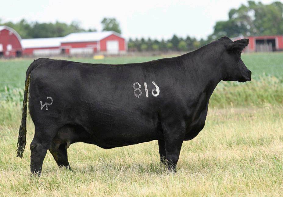 • We love the added feature and looks of this young cow! She stems from the combination of some of the most phenotypically elite Angus seedstock you will find in the nation.