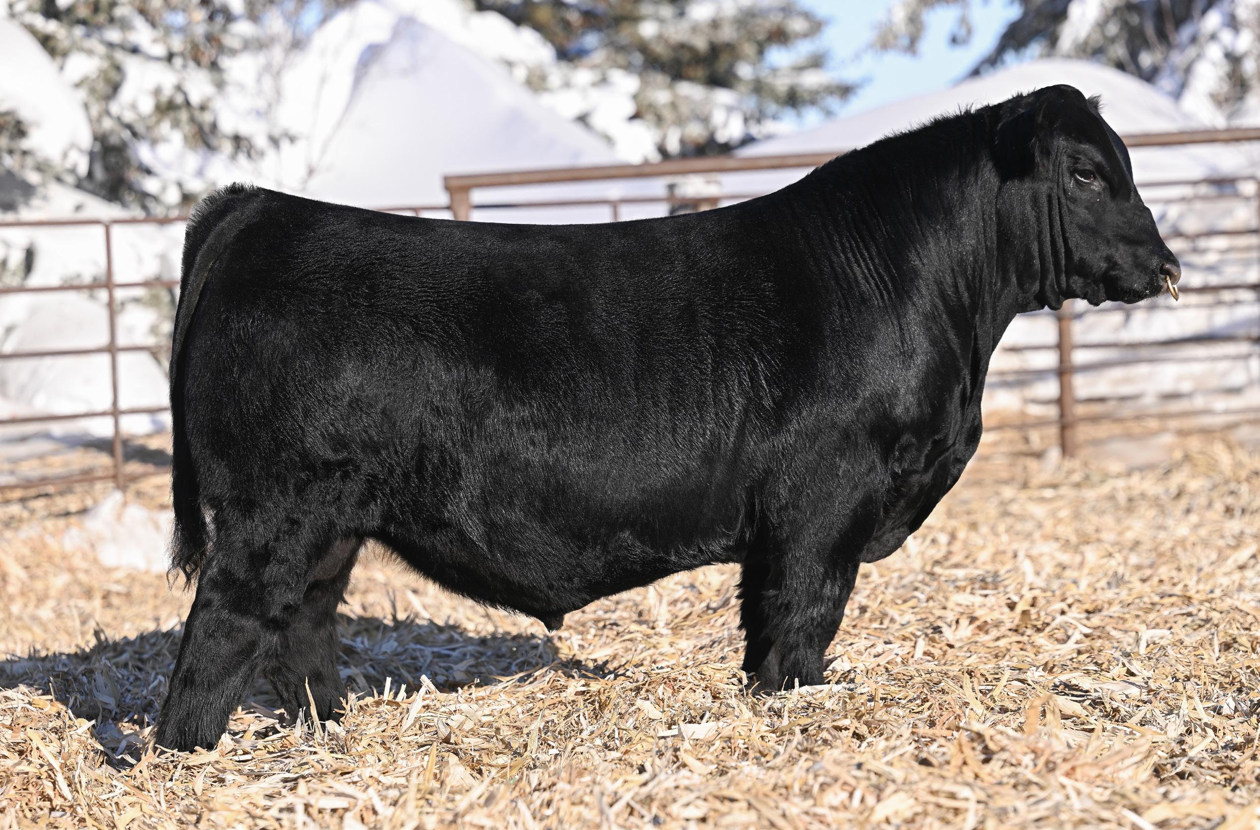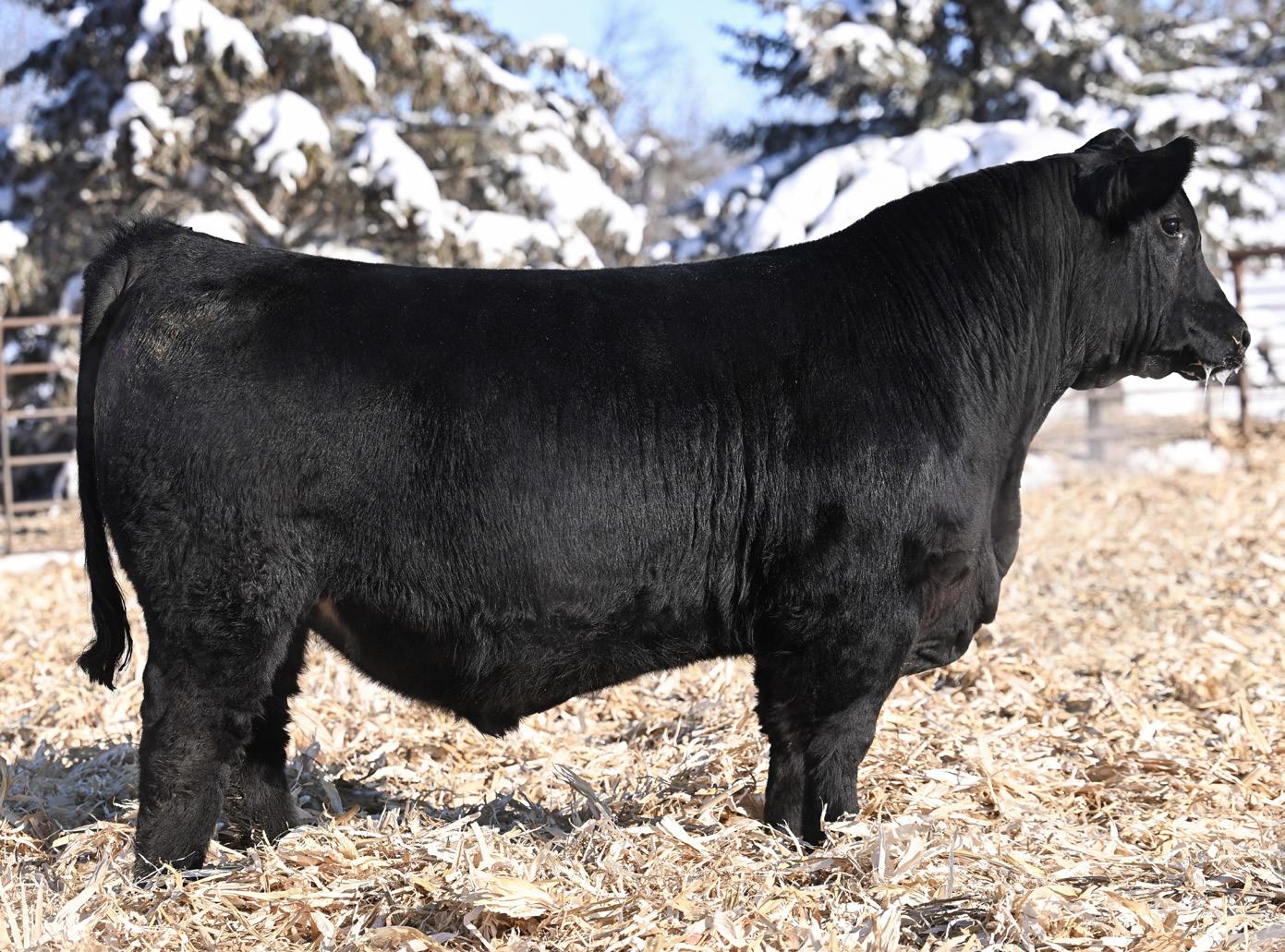 • This outlier stems from a pedigree that remains outcross to many of the performance leading sires of current, yet comes with the reliability of cow families that have been working hard for us in Pipestone. His maternal grandsire R5 Solution E111, has proven himself not only from an impressive performance standpoint, but via the maternally designed daughters he sires. They have been features in past sales for our partner on the bull, CK Cattle and Wager Cattle Companies of South Dakota.