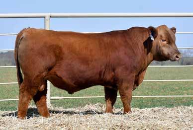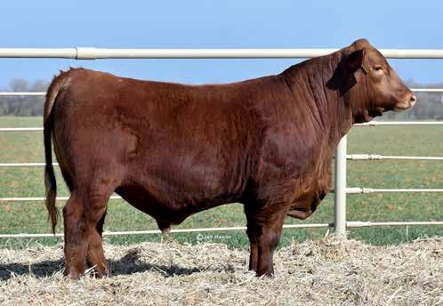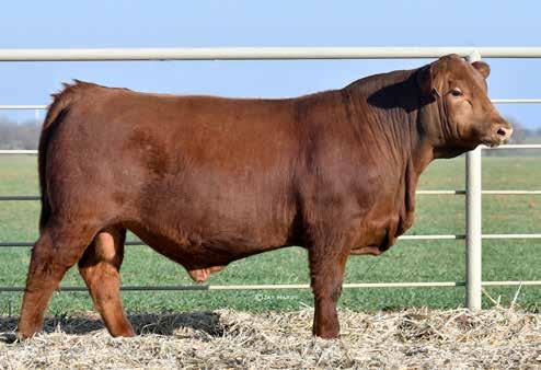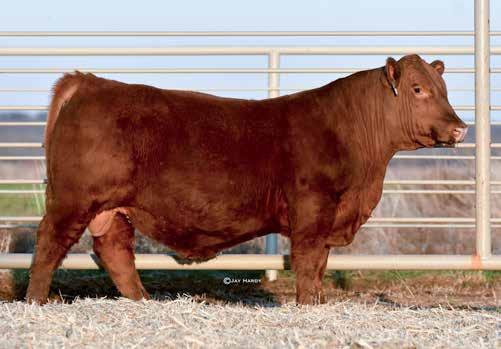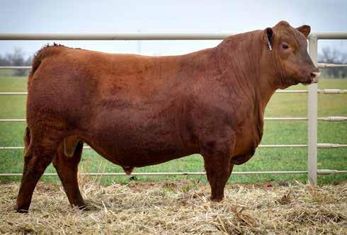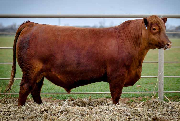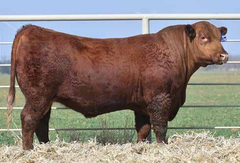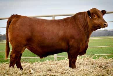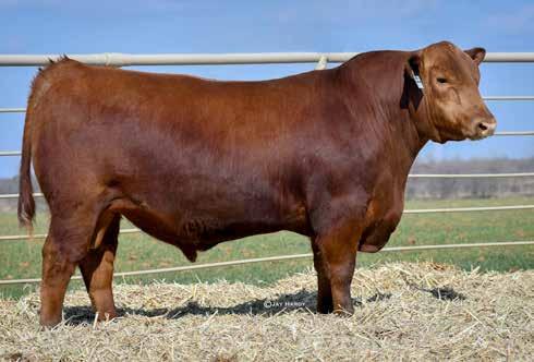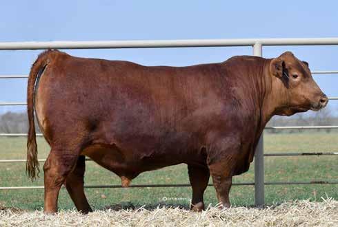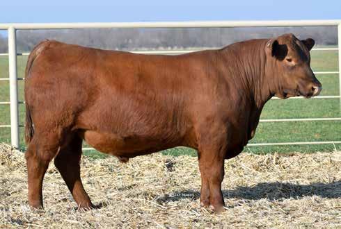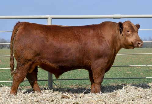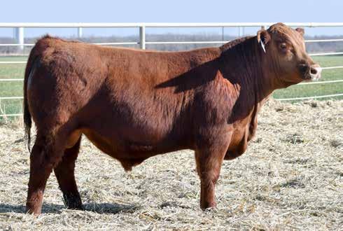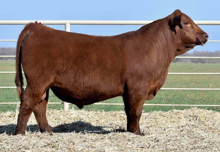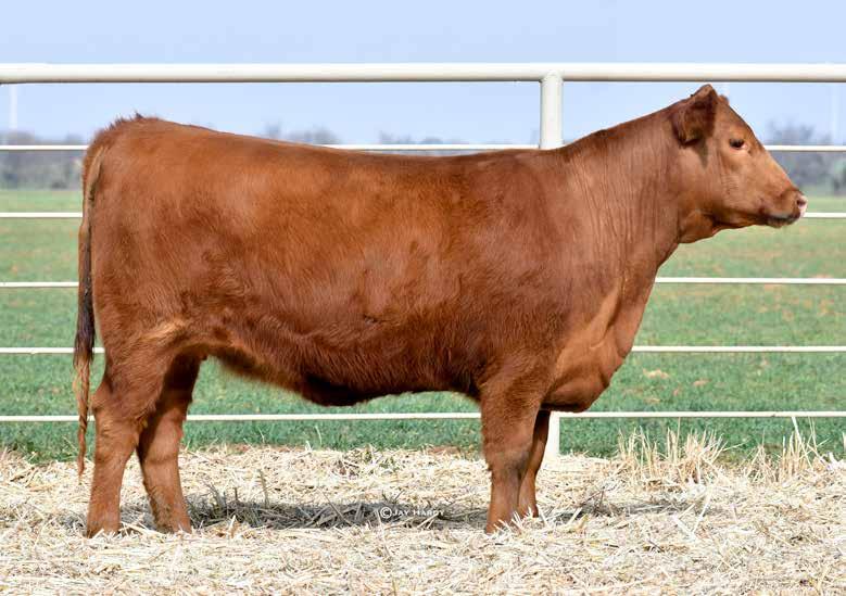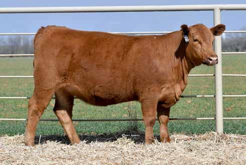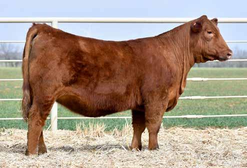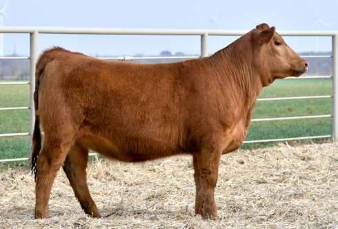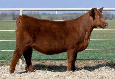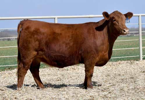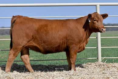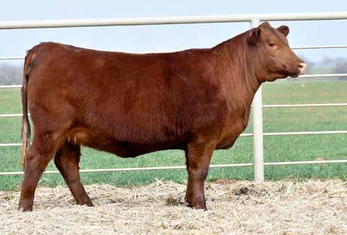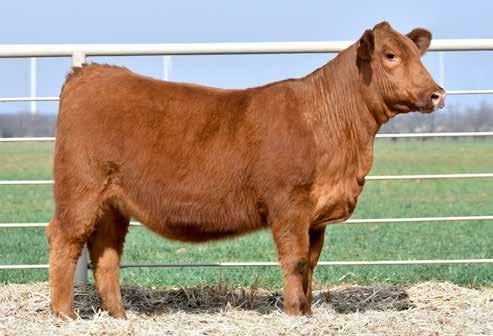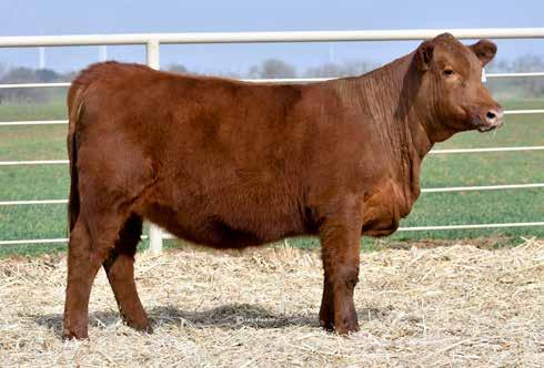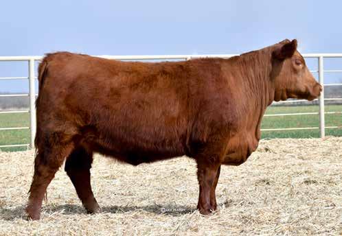 • Maternal brood cow power is built into this dark red female with her soft, bold ribcage and stout hip.