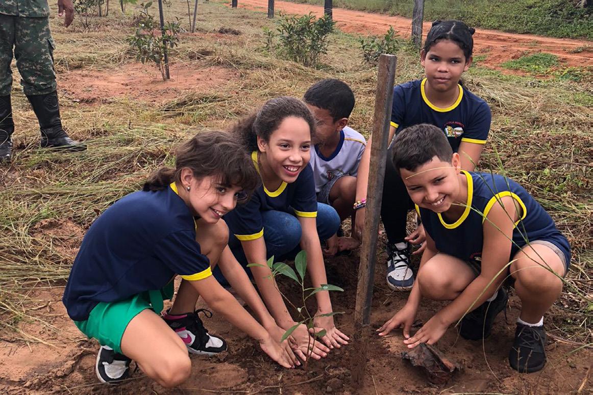 Córrego da Divisa, onde os alunos participaram de um replantio, colocando literalmente as mãos na terra e estabelecendo um contato direto com a natureza.