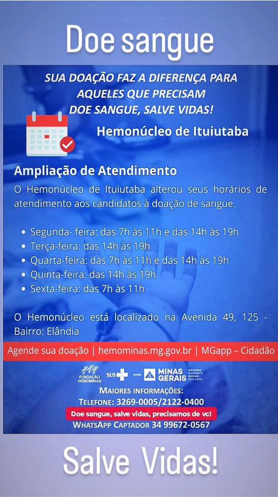 Circulação diária de terça a sexta Av. 03, nº 411 - Centro - Fone: (34) 3262-0782