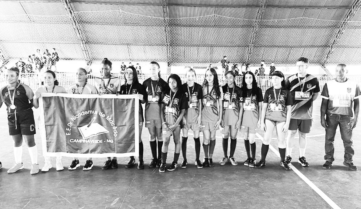 Campina Verde - Na manhã desta quinta-feira (11), a equipe feminina de futsal do Módulo I da Escola Estadual Dr. Nicodemos de Macedo conquistou o título de campeã na etapa microrregional do JEMG (Jogos Escolares de Minas Gerais), que está acontecendo em Prata-MG.