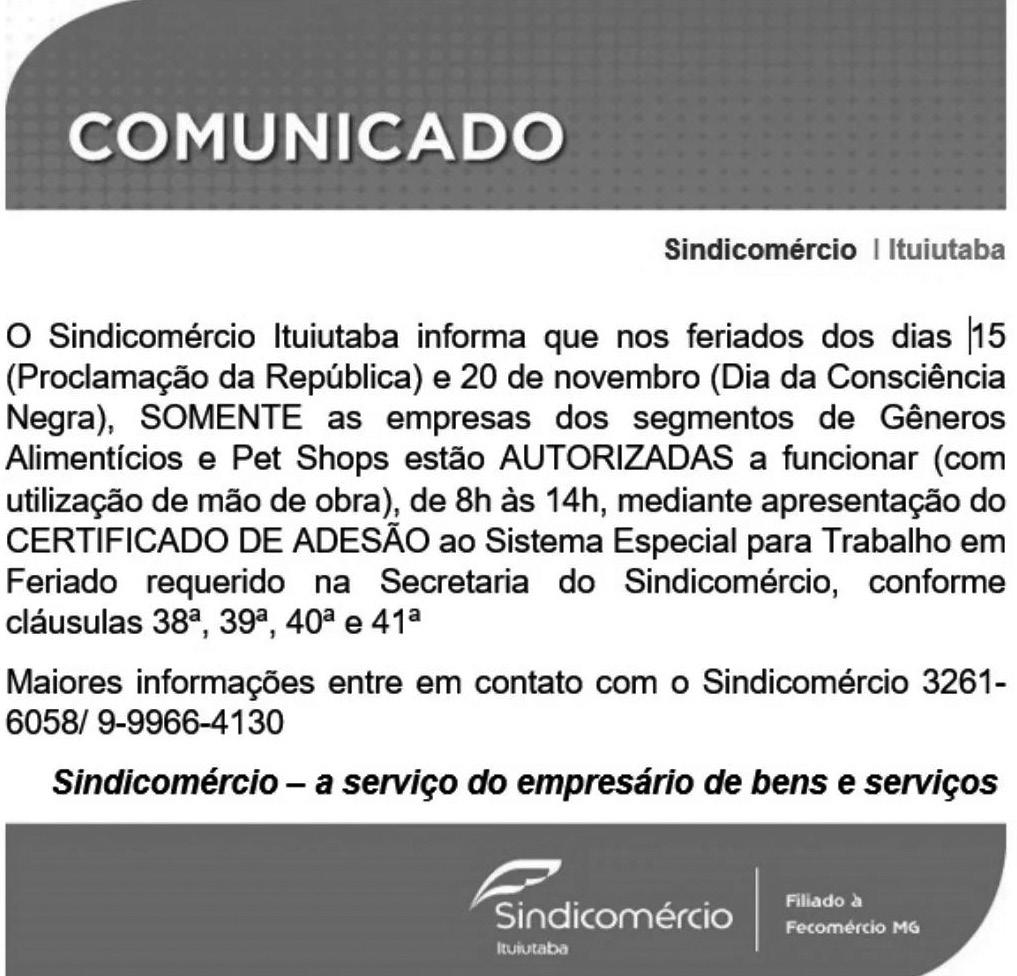Circulação diária de terça a sexta Av. 03, nº 411 - Centro - Fone: (34) 3262-0782