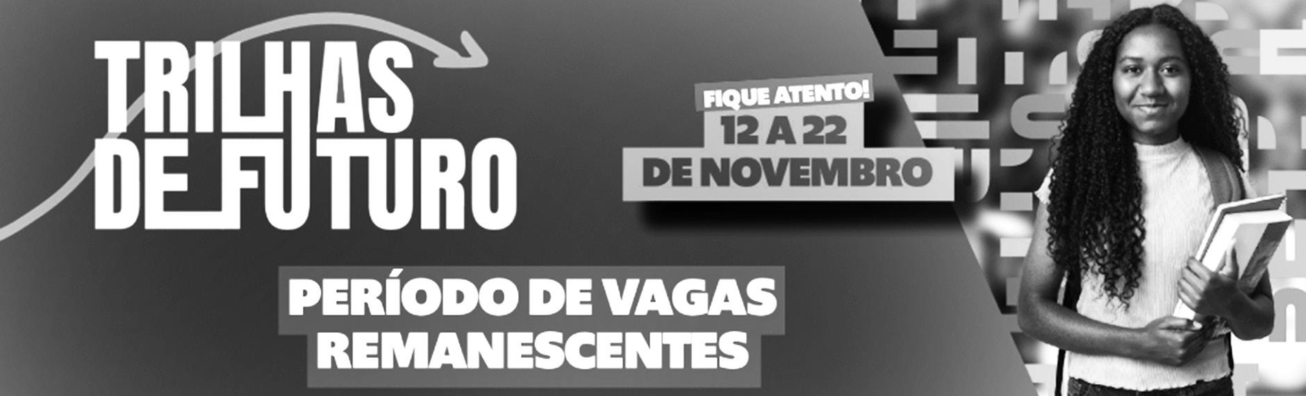 Estudantes que buscam uma formação profissional e ainda não garantiram sua vaga em um curso técnico gratuito do Trilhas de Futuro agora têm uma nova chance. Estão abertas as inscrições para as vagas remanescentes do programa do Governo de Minas, por meio da Secretaria de Estado de Educação (SEE/MG). Aqueles que não foram selecionados na chamada regular podem se inscrever até o dia 22/11 pelo site www.trilhasdefuturo.mg.gov.br.