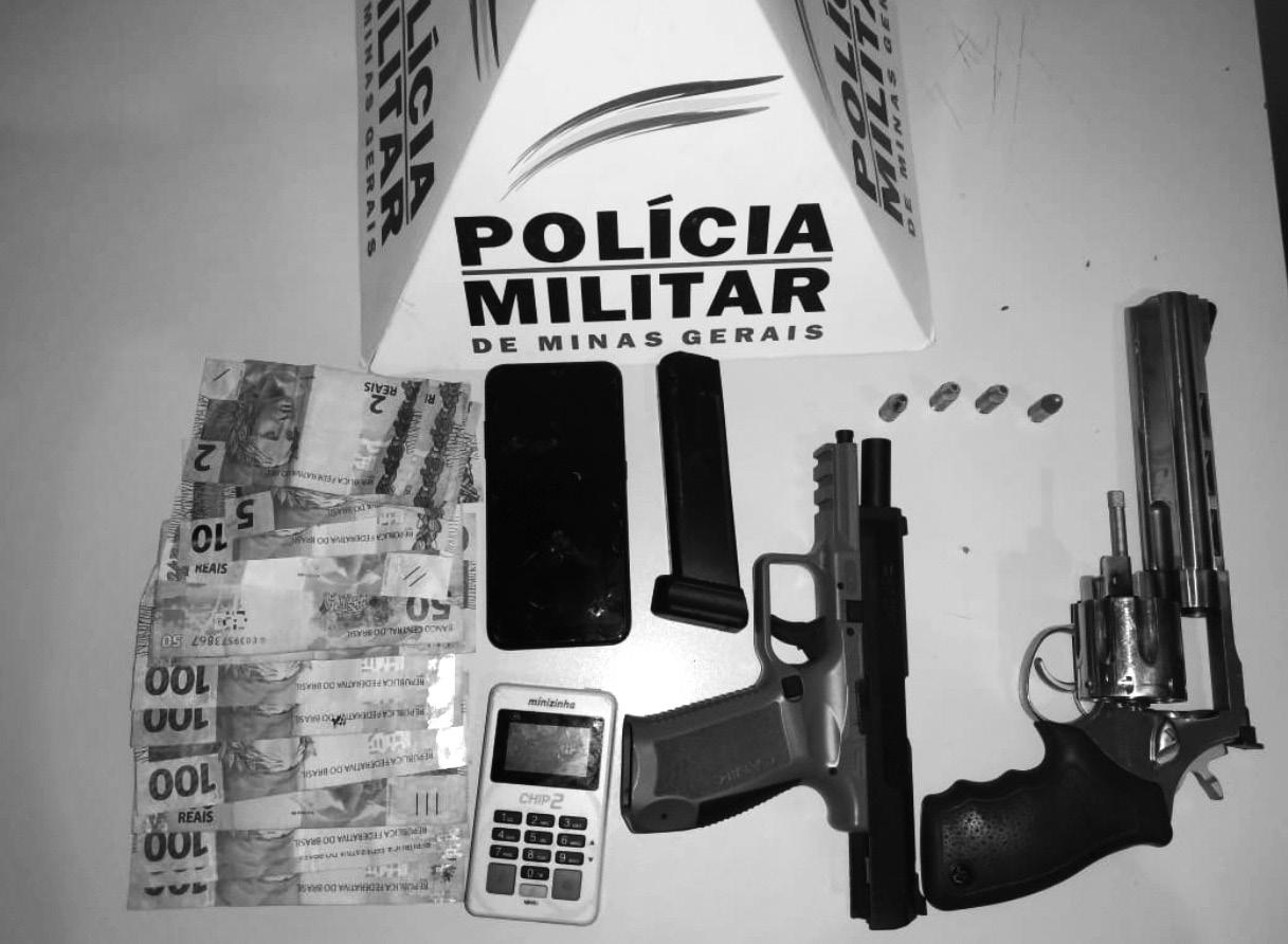 Após buscas no veículo foram encontradas duas armas de fogo, sendo um revólver Magnum calibre .357 e uma pistola calibre .9mm com a numeração raspada carregada com quatro munições intactas. Do revólver foi verificado pela numeração que o mesmo havia sido roubado em uma residência na cidade de Prata em outubro do corrente ano.