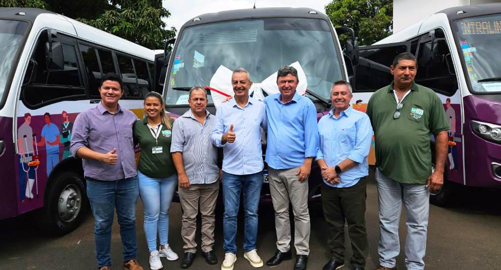 Na manhã desta última sexta-feira (12/04), o Prefeito Dr. Helder Carneiro, o Vice-Prefeito Alan Couto e o Secretário Municipal de Saúde Miguel Ângelo, acompanhados por colaboradores da pasta, estiveram em Uberlândia para a solenidade de entrega oficial dos micro-ônibus do programa Transporta SUS.