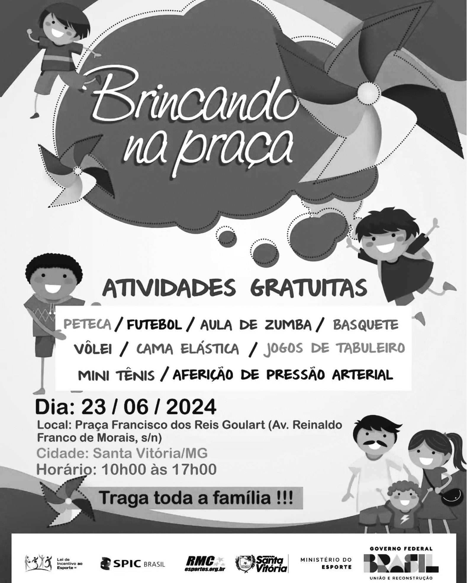 A SPIC Brasil anuncia mais uma edição do projeto “Brincando na Praça”, que acontecerá em Santa Vitória no dia 23 de junho na Praça Francisco dos Reis Goulart, em parceria com a Prefeitura de Santa Vitória e RMC esportes. As atividades ocorrerão das 10h às 17h e incluirão diversas opções para entretenimento da família e cuidados com a saúde. Entre elas, pintura facial para crianças, atividades esportivas para jovens e adultos,