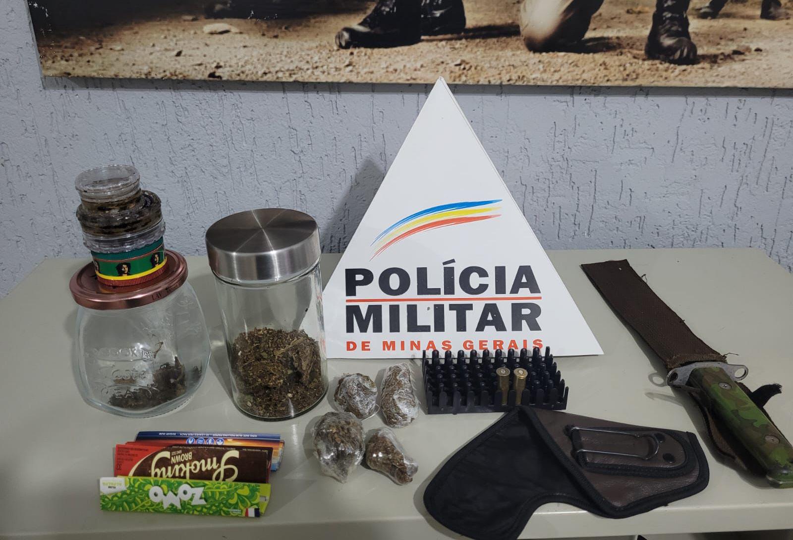lo, tendo sido encontrado pelos militares um coldre próprio para arma de fogo. As buscas se estenderam na residência do condutor, lá sendo encontrado material indicativo do crime de tráfico ilícito de drogas, conforme listado abaixo.