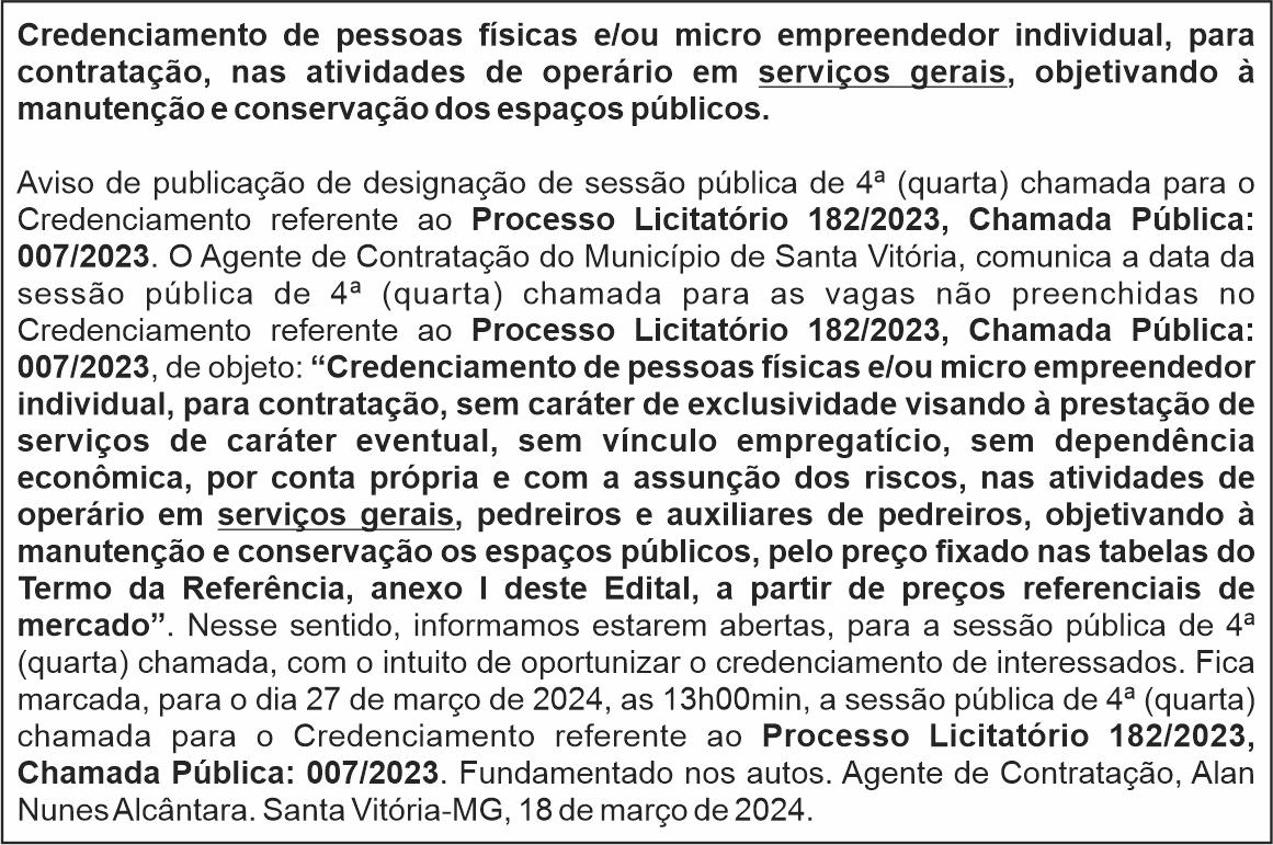 Foi assinado na tarde de ontem, dia 19, o Termo de Fomento nº 08/2024 entre a prefeitura de Santa Vitória, por meio da Secretaria de Agricultura, Pecuária e Abastecimento, representada no ato pelo prefeito, Salim Curi e pelo vice-prefeito, Renato José de Paula e o presidente do Sindicato Rural, Juraci Lima. O Presidente do Sindicato Rural Juraci Lima destacou. Página 04