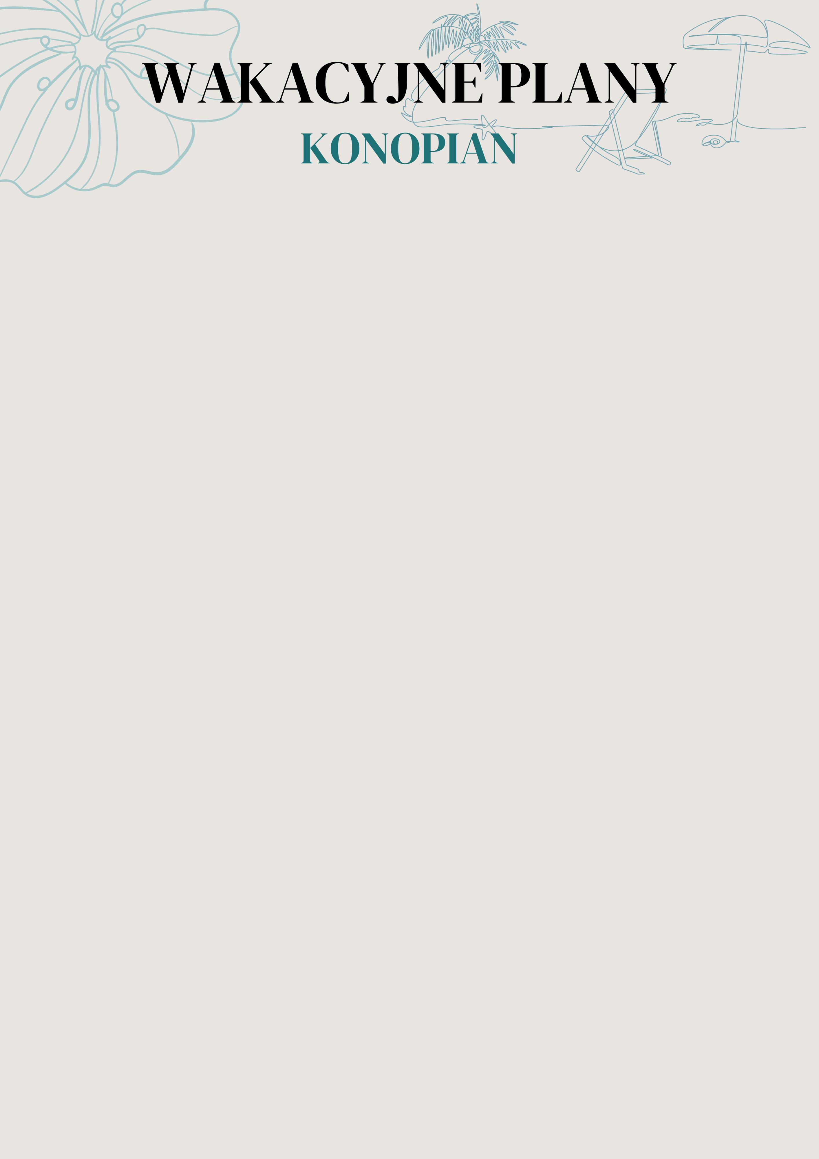 Wakacje zbliżają się wielkimi krokami. W szkole czuć wszechobecny wakacyjny klimat. Choć bramy szkoły wciąż pozostają otwarte, korytarze głośne, a ławki zajęte, to uczniowie już żyją myślami o nadchodzącym wypoczynku. Niektórzy z nas tego lata wyjadą w dalekie podróże, inni pozostaną na miejscu. Każdy z nas z pewnością ma ciekawe wakacyjne plany, a my chcemy się z wami podzielić niektórymi z nich. Wywiad przeprowadziłyśmy z wybranymi uczniami Konopy. Każdemu zadaliśmy jednakowe trzy pytania. Oto odpowiedzi:
