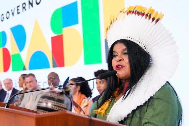 A ministra dos Povos Indígenas, Sônia Guajajara, disse que, mesmo depois de derrotas no Congresso (leia mais abaixo), não irá entregar sua pasta de “bandeja”. Eis sua declaração em entrevista à BBC Brasil publicada neste sábado (3.jun.2023): “523 anos para criar um ministério e vou entregar de bandeja na 1ª pedra que aparece no meu caminho?”. O ministério comandado por Guajajara perdeu poderes com a aprovação da medida provisória da Esplanada no Congresso. O texto estabelece que a demarcação de terras indígenas é de responsabilidade do Ministério da Justiça e Segurança Pública, de Flávio Dino.