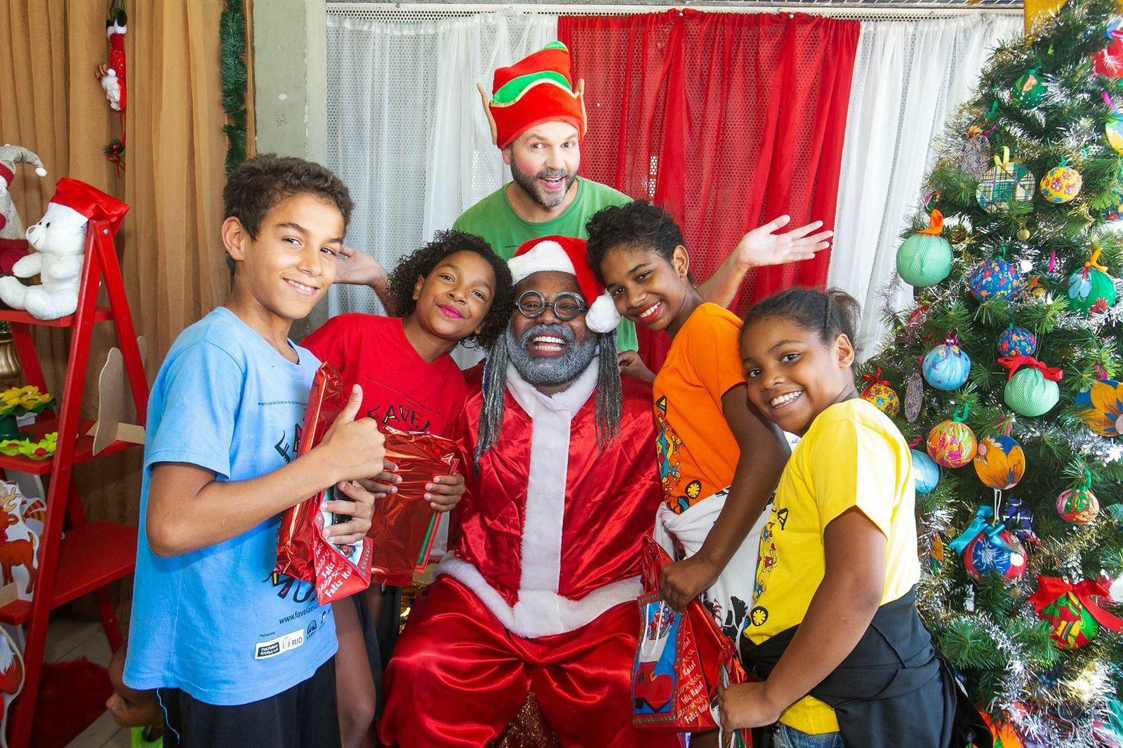 alunos conseguindo se identificar na imagem do Papai Noel. O ator Rodri go França já está conosco há vários anos interpre tando o bom velhinho e Felipe Canela reforçará o time, além de duendes e gnomos que ajudarão na animação”, ressalta Mar cello Andriotti, fundador da Favela Mundo.