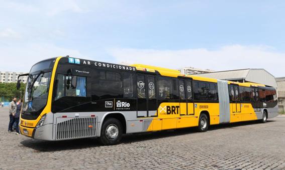 Oprefeito do Rio de Janeiro, Edu ardo Paes, apre sentou nesta terça-feira (27) o novo modelo de ônibus que será usado na operação do sistema BRT na cidade. O veículo articulado, que agora será identificado com as co res amarela e prata, é mais moderno. Paes reconheceu que a população enfrenta dificuldades no serviço, mas destacou a “satisfação e uma alegria sem tamanho” ao re ceber o primeiro ônibus.