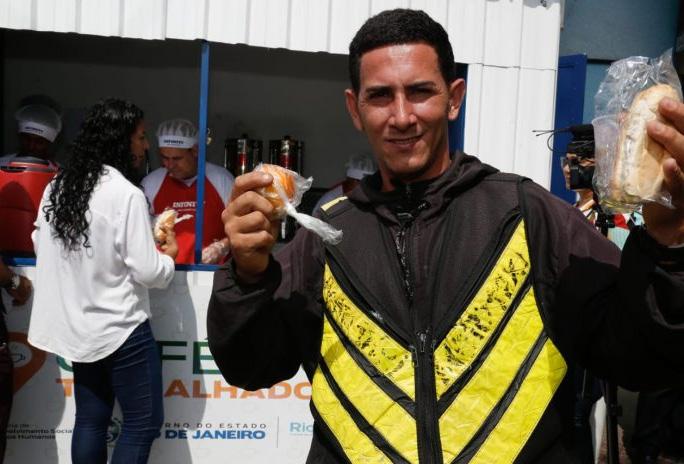 Em Nova Iguaçu, o serviço funciona na Rua Professora Marli Pereira de Carvalho, s/ nº, no bairro Miguel Couto, de segunda a sexta-feira, a par tir das 4h30. Ao todo, serão 500 cafés diários na cidade. Cada kit é composto por uma bebida quente sem açúcar, um pão com manteiga e uma fruta. Também acompanham guardanapos, mexedor des cartável e sachês de açúcar ou adoçante para cada ben eficiário, itens armazenados em sacola plástica para o transporte seguro. Para o mototaxista Peter son Pereira, de 32 anos, o programa chegou em boa