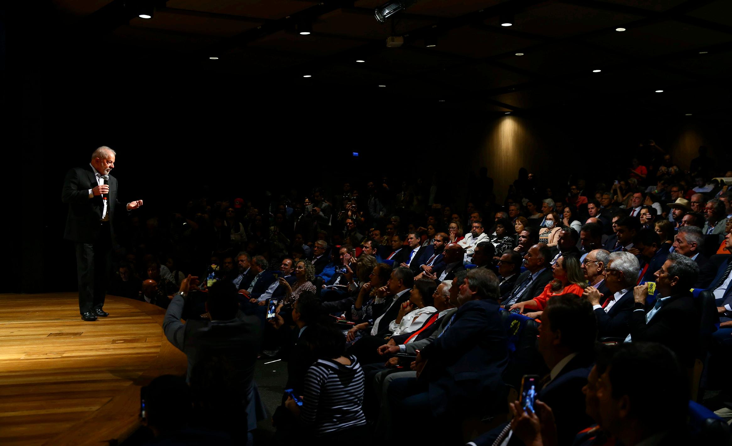 Lula discursou sobre o "Bra sil do Futuro" a uma plateia formada por deputados e senadores de partidos alia dos em auditório do CCBB (Centro Cultural Banco do Brasil), sede do governo de transição. No palco também estavam Alckmin, a pres idente do PT, Gleisi Hoff mann, e a esposa do presi dente eleito, Janja.