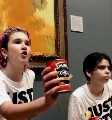 “Vocês estão mais preocupados com a proteção de uma pintura ou com a proteção do planeta e das pessoas?”, disse uma das manifestantes