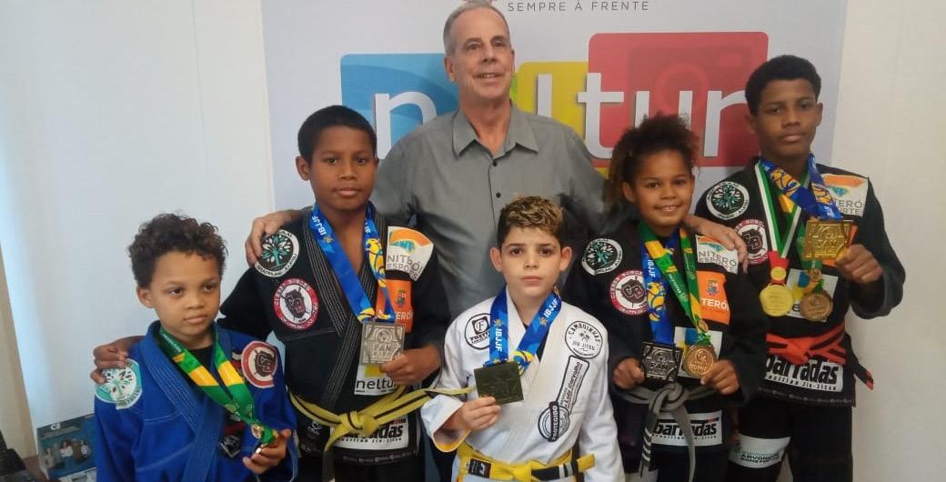 Um grupo de sete jov ens atletas niteroiens es de jiu-jitsu, com vários títulos de campeões, participa de competições na Europa e em Abu Dhabi. Os atletas viajam com apoio da Prefeitura de Niterói, através da Niterói Empresa de Lazer e Turismo (Neltur). Nos me ses de outubro e novem bro, Cauã Freitas, os irmãos Borges, João Kleber Borges e João Gabriel Borges, Laura Araujo, Rafaela Pontes, Luan Gonçalves e Gabriel Nasci mento estão em busca de novos troféus.